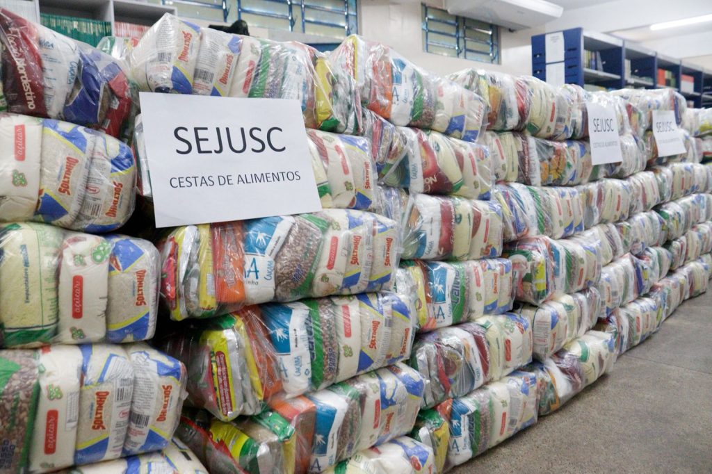 Além disso, a Sejusc entregou 545 cestas de alimentos para famílias em situação de vulnerabilidade, previamente cadastradas pela secretaria. Os kits contém arroz, feijão, açúcar, café, bolachas doces e salgadas, macarrão e enlatados, totalizando cerca de 9 kg de alimentos.